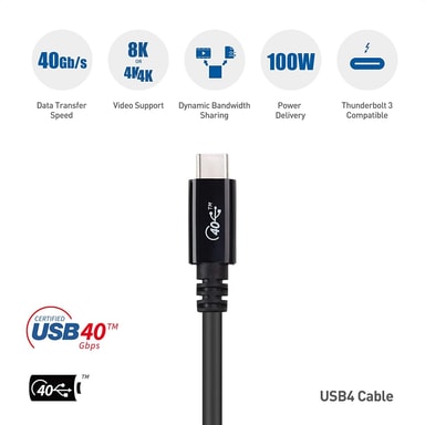 Denne USB 4-kabelen fra kabelforholdene er sertifisert av USB-hvis organisasjonen og oppfyller alle tekniske spesifikasjoner for USB4. Den støtter 40GBPs dataoverføring, 100W strømlevering og 8K-video. USB4-kabel støtter DP ALT-modus 2.0 CH med oppløsning på opptil 8k 60Hz. USB C-kabelen er tilbake kompatibel med tidligere versjoner av USB C IE USB C 3.2, USB C 3.1 og USB C 2.0. Støtte for 20Gbps. Støtte for 4k 60Hz-støtte for Thunderbolt 3