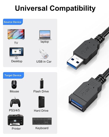 NÖRDIC USB 3.0 type A skjøtekabel 3m lar deg forlenge en USB-A-signalkjede uten behov for en ekstern strømforsyning eller drivere.Spesifikasjoner: