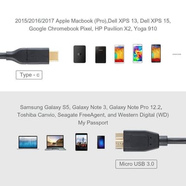 Med denne USB-kabelen kan du enkelt koble en mobiltelefon, bærbar PC eller annen USB-C-enhet med OTG-støtte til din eksterne harddisk. Kabelen støtter datahastigheter på opptil 5 Gbps. 1 meter lang og sort plast.