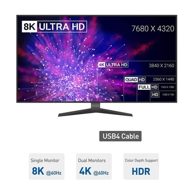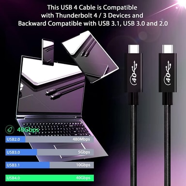 NÖRDIC USB 4-kabel støtter 40 Gbps dataoverføring, 100 W strømforsyning og 8K-video. Passer for alle bærbare datamaskiner, stasjonære datamaskiner, macbooks, nettbrett og smarttelefoner med en USB-C- eller Thunderbolt 3-port.Spesifikasjoner: