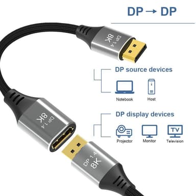 NÖRDIC Displayport 1.4 skjøtekabel lar deg forlenge en Displayport-signalkjede uten behov for drivere eller ekstern strømforsyning.Spesifikasjoner: