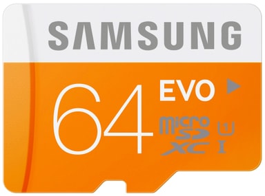 • Samsung Micro SDXC EVO 64 GB minnekort + adapter