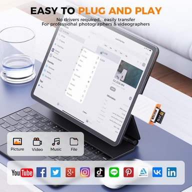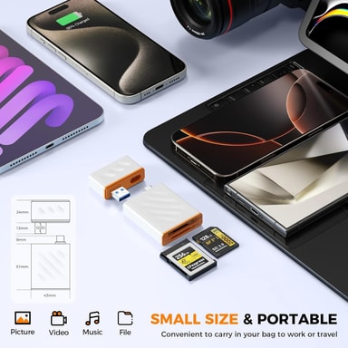NÖRDIC CFexpress Type B & SD 3.0-kortleser gir rask filoverføring opptil 10 Gbps. Den støtter både CFexpress Type B og SD-kort og er ideell for brukere som jobber med høyoppløselige bilder og video. Med en medfølgende USB-C til USB-A-adapter (USB-C hunn til USB-A hann) kan kortleseren enkelt kobles til både nye og eldre enheter. Plug & Play – ingen drivere kreves.Spesifikasjoner: