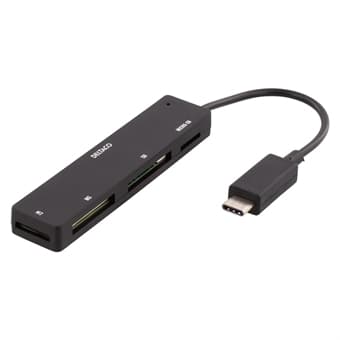 Minnekortleser med USB 2.0, kobles til datamaskinen via USB-C, Kortleseren har fire plasser.