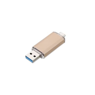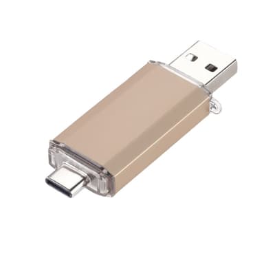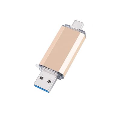 USB-minnet har ett 64 GB stort lagringsutrymme och erbjuder höghastighetsöverföring för foton, musik, videor och andra filer. USB-stickan har både en USB-kontakt och en USB-C-kontakt för att även kunna kopplas till mobiler och datorer med USB-C.