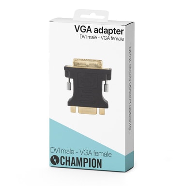DVI hann (24 + 5) - VGA hun (15-pinners) adapter med fullstøpte kontakter. Brukes til å konvertere en DVI-utgang til en VGA. For eksempel. for tilkobling av PCer, flatskjerm-TVer, projektorer osv.