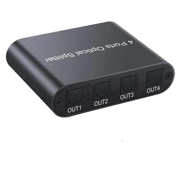 Denne 4-ports optiske splitteren kan tillate brukere å koble til og distribuere en digital Toslink optisk kilde til fire Toslink optiske (SPDIF) innganger på AV-forsterkeren. Lydformatstøtte: LPCM2.0 / DTS / Dolby-AC3 Overspenningsbeskyttelse kan forhindre skade forårsaket av uovertruffen tilkobling til maskinen. Drives av USB-lader 5V 1A (Ikke inkludert) USB-ladekabel inkludert. Spesifikasjoner: Støtte for lydformat: LPCM2.0 / DTS / Dolby-AC3 Toppbølgelengde: 650nm Maksimal overføringshastighet: 16 Mbps kabelavstand utgang: ?40m Maksimal driftsstrøm: 100mA Strømforsyning: USB-strømkabel Driftstemperaturområde: (0 til 40) ?) Driftsfuktighetsområde: ? RH Størrelse: 70,3x55,7x18,4mm 1x USB Strømkabel 1xToslink kabel 1m