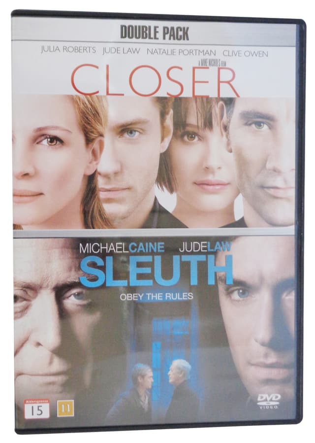 Closer er en romantisk dramafilm fra 2004 av Patrick Marber. Sleuth er en amerikansk film fra 2007 med Michael Caine og Jude Law i hovedrollene.Les mer om produktet