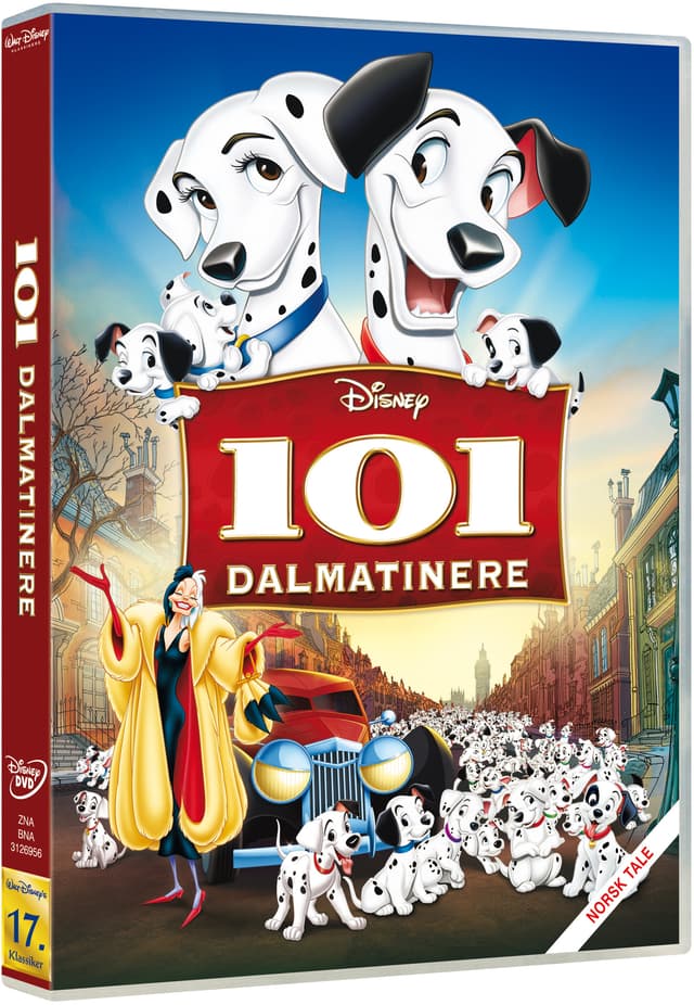 De er livlige, sjarmerende og best av alt - det finnes 101 stykker av dem! Bli med disneys dalmatinere på et fantastisk eventyr for hele familien, fylt med spenning, latter og masse prikker! Hjemme hos roger og anita er lykken fullkommen – deres dalmatinere pongo og perdita har fått sitt første kull med 15 uimotståelige små valper. Men en dag blir plutselig valpene kidnappet! Og ikke nok med det, hver eneste dalmatinervalp i hele london er sporløst forsvunnet. Hvem kan ha tatt dem – og hvorfor? Den store hundealarmen går, og hunder av alle raser hjelper til med å lete. Sporene leder ikke helt uventet til den lumske og upålitelige cruella de vil, som alltid har drømt om å lage en prikkete pels… disneys originalversjon av 101 dalmatinere – sjarmør i pels er laget av disneys legendariske tegnere og er en selvfølge i en hver klassikersamling. Denne utgaven har digitalt restaurert bilde og lyd for en uslåelig filmopplevelse.