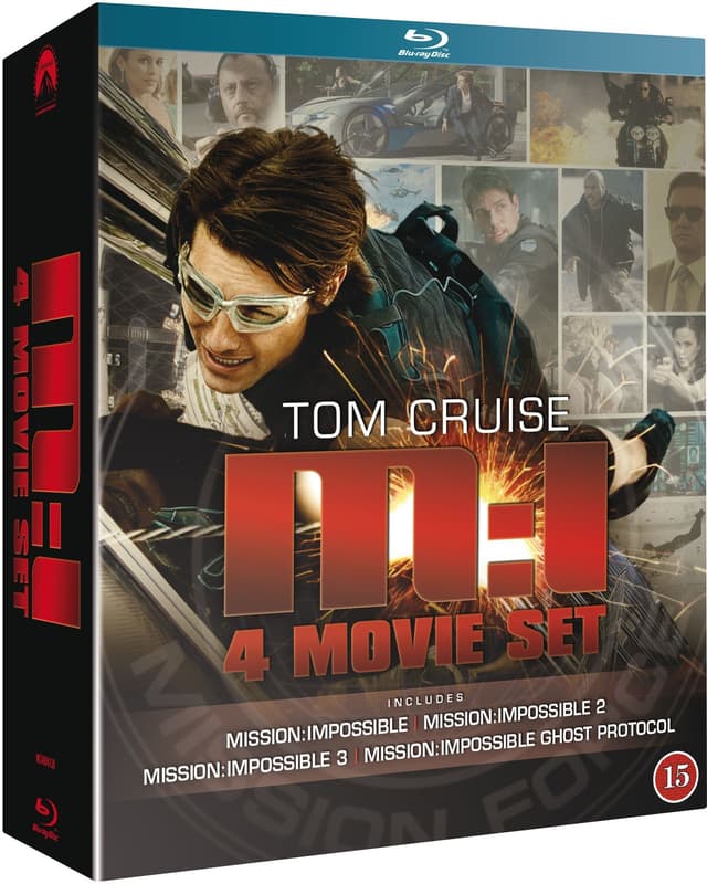 Samleboks med alle Impossible-filmene: Mission Impossible, Mission Impossible 2, Mission Impossible 3 og Mission Impossible Ghost Protocol.Les mer om produktet