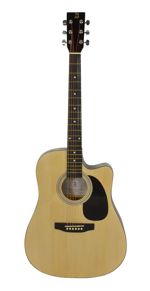 A nice guitar doesn't have to break the bank. don't let the low price fool you - this is a quality guitar which compares to more expensive instruments. the guitar has a cutaway design, which makes it possible to play solos using the higher frets.