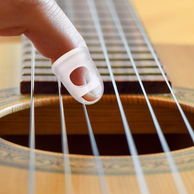 Beskytter fingrene mot smerte: Fingerbeskytterne fungerer som en beskyttende barriere mellom fingertuppene og gitarstrengene. De reduserer effektivt trykk og friksjon på fingrene, slik at du kan trene i lengre perioder uten å oppleve smerte eller sårhet.