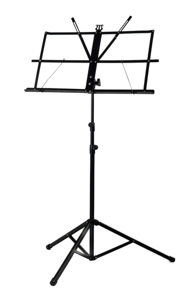 Klassisk sammenleggbart notestativ To noteholdere hjelper med å holde arkene på plass Leveres med bæretaske Maks høyde: 160 cm til bunnen av...Les mer om produktet