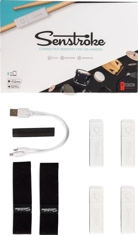 Med Senstroke Standard trommesett kan du trene på trommer hvor som helst uten å plage noen. Sensorene reagerer på kontakt og reagerer dynamisk (jo hardere du treffer, jo høyere lyd), slik at du får følelsen av at du spiller på ekte trommer. Samtidig kan du bruke omtrent alt fra sofaen din til bøker som et bord for å sette sammen et trommesett.