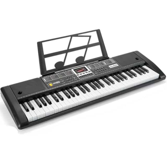 60 demo-sanger, 200 toner, 200 rytmer, 5 perkusjonslyder, opptaksfunksjon, 2 høyttalere, volum- og tempokontroll, dyr, digital skjerm, læringsmodus, MP3.