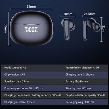 Hodetelefonbatterikapasitet: 35mAh
