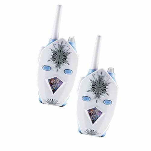 Frozen ii walkie talkie . Trykk for å snakke-funksjonen. På/av-knapp. På er indikert med lys. Fryst ii-grafikk lyser opp. Rekkevidde opp til 150 meter. Krever 2 x 3 aaa-batterier (ikke inkludert). Anbefalt alder fra 3 år og oppoversend og motta lydeffekter, din stemme og tale med anna, elsa, olaf og kristoff fra den nye filmen frozen 2. Bare trykk på send-knappen så er du klar til å dele hemmelighetene dine og oppleve nye eventyr. Innebygde lyseffekter og strømindikator.