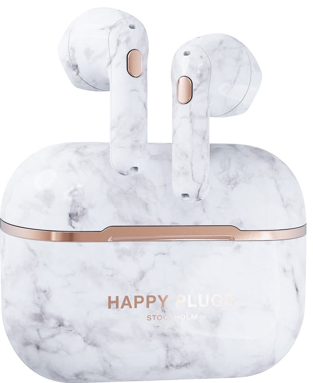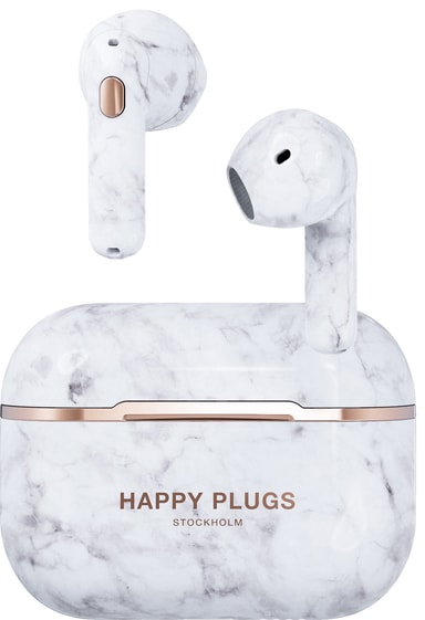 • Happy Plugs Hope helt trådløse in-ear hodetelefoner (white marble)