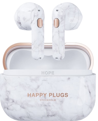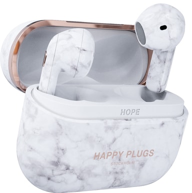 Happy Plugs Hope helt trådløse in-ear hodetelefoner (white marble)