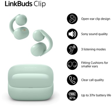 Sony LinkBuds Clip helt trådløse open-ear hodetelefoner (grønn)
