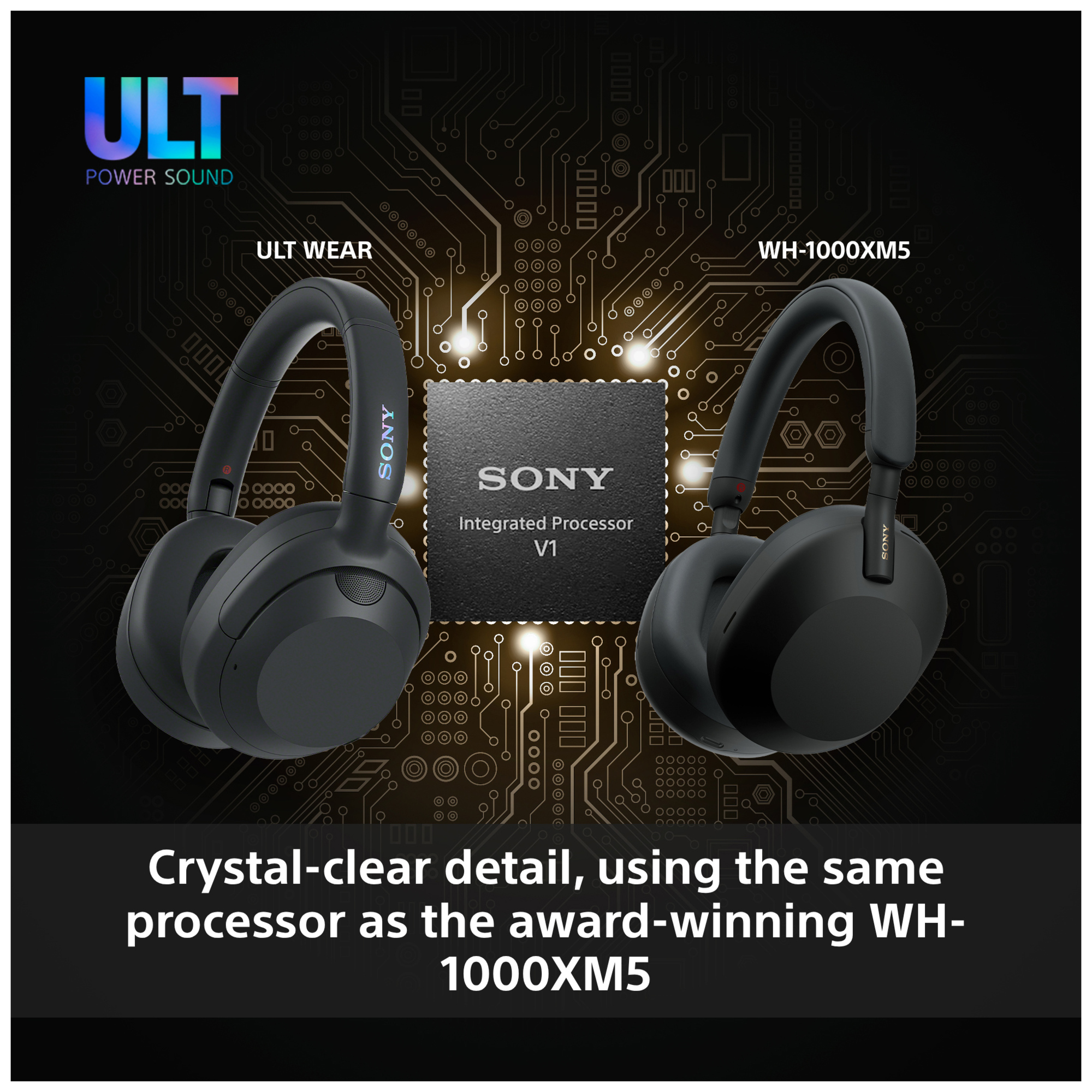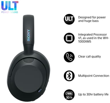 Den kraftige lyden du hører drives av vår integrerte prosessor V1 med fantastisk ytelse, og produseres gjennom våre store, høykvalitets 40 mm høyttalerenheter. Bygget på flere tiår med lydekspertise i Sony, er ULT WEAR-hodetelefonene skapt for de som er besatt av bass.