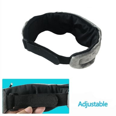 Justerbar størrelse: Sove-hodetelefonene er utstyrt med borrelås, slik at du kan justere sovemasken til din egen størrelse. Høyttalernes posisjon kan også justeres, slik at de sitter komfortabelt ved ørene.