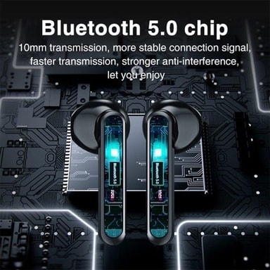 True Wireless Stereo Bluetooth Hodetelefoner med smart ladeetui som ikke bare beskytter hodetelefonene men også kan lade opp dem. Hodetelefonene fungerer også som et headset med innbygd mikrofon så at du kan ta i mot telefonsamtaler. Med rask Bluetooth 5.0 har du alltid stabil oppkobling og trenger ikke å bekymre deg for at musikken eller samtalen ska brytes. Hodetelefonene sitter behagelig i øret hele dagen uten å gi trykkfølelse eller falle ut.