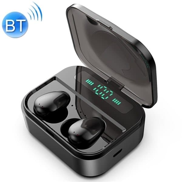 True Wireless Bluetooth Headset med ladedeksel og digital display.