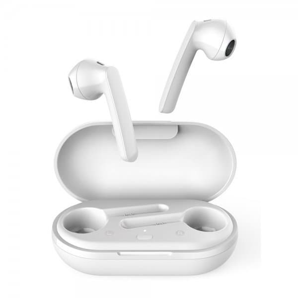 Trådløse bønneformede ørepropper i hvit farge og utstyrt med touchkontroll. De gjør det enkelt å lytte til alle enhetene dine og kobler automatisk til så snart de er parkoblet.