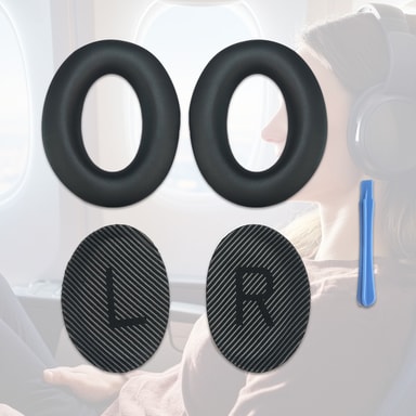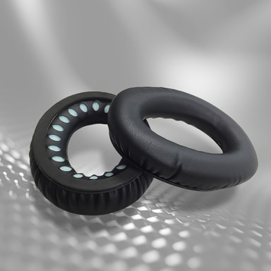 Myke, komfortable øreputer for Bose QC35/SoundTrue-hodetelefoner med en glatt overflate laget av kunstskinn. Innsiden laget i memory foam har en støydempende effekt og gjør øreputene behagelige å ha på.