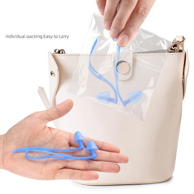 Anti-tap design: Aldri bekymre deg for å miste øreproppene dine igjen! Den integrerte snoren holder disse øreproppene sikkert rundt halsen når de ikke er i bruk. Perfekt for svømming, sport eller enhver aktivitet der du raskt må fjerne og sette inn øreproppene igjen. Dette designet gir trygghet og forhindrer utilsiktede fall eller feilplassering, og sikrer at øreproppene dine alltid er innen rekkevidde. Nyt uavbrutte aktiviteter uten konstant bekymring for å miste øreproppene dine.