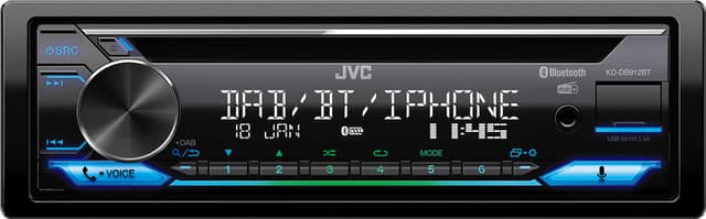JVC KD-DB912BT bilstereo gir full frihet til å nyte bilturen med musikk og veibeskrivelse fra Alexa-tjenesten, Digital radio, CD, Bluetooth, AUX og USB. Vær trygg i trafikken med handsfree-telefonstyring, automatisk Bluetooth-paring, Spotify og mer.Les mer om produktet