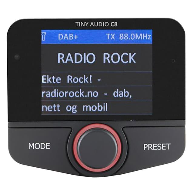 Med Tiny Audio C8 DAB/DAB+ biladapter får du DAB+ radio i bilen samtidig som du kan koble til smarttelefon med Bluetoothog lytte til egen musikk eller ta handsfreesamtaler. C8 får strøm fra 12/24V-kontakten i bilen og sender DAB-lyd over FM-radiobølgene. Det bakbelyste displayet gir informasjon om kanal, spor og programmet. Du mottar også trafikkmeldinger med Tiny Audio.