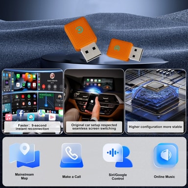 Forbedret tilkobling: Denne CarPlay-adapteren har Bluetooth 5.3-teknologi, som gir en stabil og rask tilkobling til smarttelefonen din. Nyt krystallklar lyd og sømløs dataoverføring for en forbedret underholdningsopplevelse i bilen. Adapteren støtter Siri og Google Assistant, slik at du kan kontrollere musikk, navigasjon og telefonsamtaler med talekommandoer. Kompatibel med et bredt spekter av bilmodeller og ettermarkedsenheter som støtter kablet CarPlay, er denne adapteren den perfekte oppgraderingen for kjøretøyet ditt.