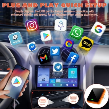 Sømløs trådløs CarPlay: Opplev friheten med trådløs CarPlay med denne adapteren. Konverter ditt kablede CarPlay-system til trådløst, og eliminer behovet for kabler. Nyt automatisk og sømløs tilkobling til din iPhone hver gang du setter deg i bilen. Denne adapteren støtter vanlige kart, telefonsamtaler, bruk av Siri, Google-kontroll og lytting til online musikk. Kompatibel med iOS- og Android-systemer, og tilbyr en virkelig allsidig og praktisk opplevelse i bilen. Dual-core-prosessoren sikrer jevn og responsiv ytelse, mens 8 GB lagringsplass gir god plass til apper og data.