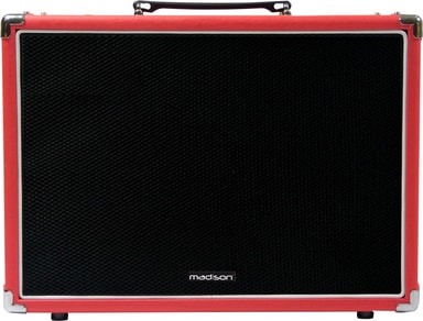 20cm speaker. Headphone output. Gain & volume controls. GRIND mode. 3-tone EQ. Reverb with length & depth control. Mic input with volume control. AUX Line input for CD/MP3 players. Top handle. Protective ...Les mer om produktet