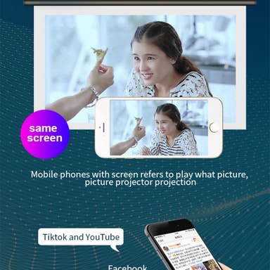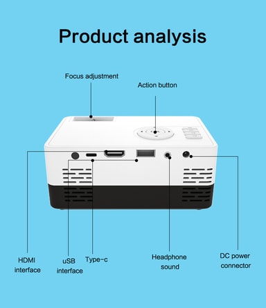 Liten och bärbar: Mini videoprojektor är liten och bärbar, och mini bärbar projektor kan bäras i en ficka eller väska. Oavsett om du tittar på film, spelar spel eller njuter av sport livestreaming, utomhuscamping eller festar med vänner, är detta din fantastiska privata teater.