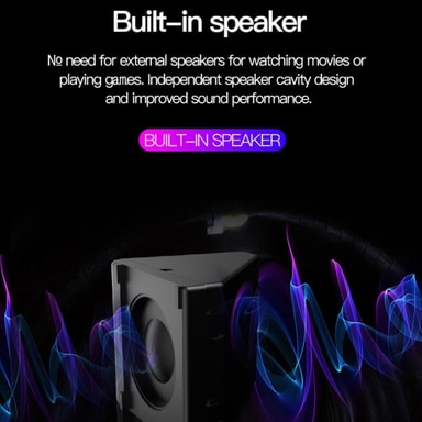 Inbyggd högtalare: Med inbyggda stereohögtalare kan du njuta av fantastiska ljudeffekter eller ansluta till ditt hemmabiosystem för en ännu bättre ljudupplevelse.