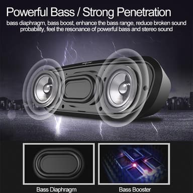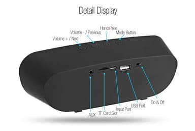 To høyttalere som gir deg god surroundlyd og har en stabil Bluetooth-tilkobling. Den kan være i en avstand på opptil 10 meter fra den tilkoblede enheten og fungerer med alle enheter som har Bluetooth. Høyttaleren har en lang batterilevetid på opptil 12 timer, noe som gir deg underholdning hele dagen. Den innebygde mikrofonen lar deg også motta samtaler. Hvis enheten ikke støtter Bluetooth, kan du koble til et minnekort eller koble til en AUX-ledning for å fortsatt spille av musikk. Innebygd mikrofon for samtaler.