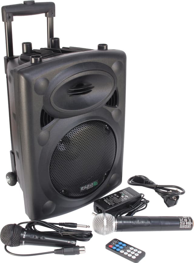 Smart transportabel batteridrevet høyttaler med trådløs mikrofon og mange muligheter for avspilling av musikk, bl.a. BLUETOOTH, så du kan streame musikk trådløst.
