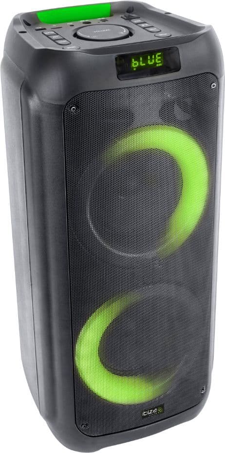 Ibiza LYRA400 Mini Party-høyttaler Minifesthøyttaler med imponerende lyd til tross for sin kompakte størrelse. Samle lyd- og lysshowet i én herlig og transportabel løsning. Med stort LED-belyst basspanel med mange forskjellige lyseffekter å velge imellom. Med 2 x 6,5"" basshøyttalere og 1 x 1"" horn, leverer LYRA400 vakker og fyldig lyd. Mange avspillingsmuligheter: Bluetooth, USB, AUX. Mikrofoninngang med opptaksfunksjon. True Wireless Stereo lar deg koble til to LYRA4000-enheter med en ekstern bluetooth-kilde for en komplett lydopplevelse. Stort internt ladbart batteri.