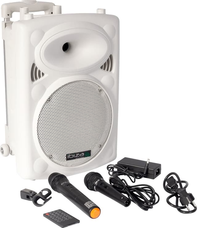 Bluetooth mottak. Innebyggd lader & ladbart batteri. Håndtak og hjul for enkel transport. 1 x trådløs mikrofon. 1 x mikrofon med kabel. 1 x fjernkontroll. MP3 og iPod innganger. Les mer om produktet