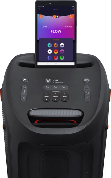 Sett i gang festen med denne JBL PartyBox 310 trådløs høyttaler og opplev den kraftige JBL Pro Sound med lydeffekter, levede lyseffekter, karaokemodus, kraftig batteri, IPX4-sprutsikker beskyttelse og innebygde hjul for enkel transport.Les mer om produktet