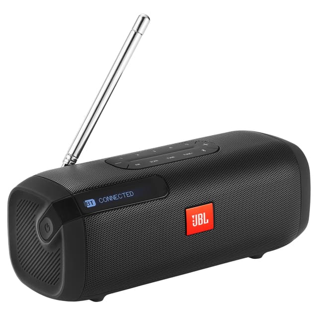 JBL Tuner bærbar Bluetooth-høyttaler med FM/DAB-radio er en 2-i-1-enhet som du kan bruke som høyttaler og strømme musikk trådløst fra smarttelefonen eller nettbrettet via Bluetooth, eller som en bærbar radio for å nyte musikk og radioprogrammer i krystallklar digital kvalitet.