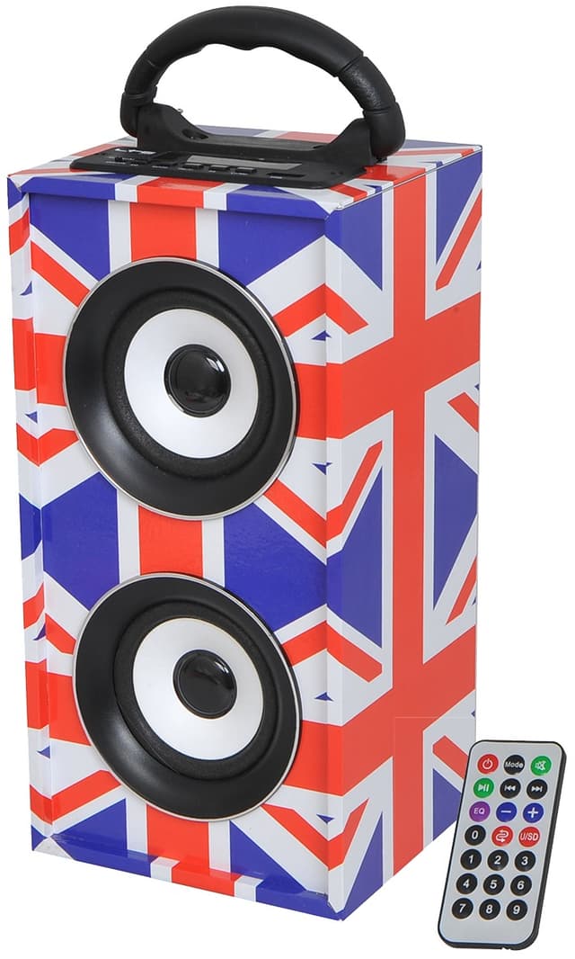 USB & Micro-SD player (MP3 file formats) FM tuner. Bluetooth. AUX input. Top mounted display & handle. Built-in Li-ion battery. Remote control. Supplied with USB charging & AUX leads. Les mer om produktet