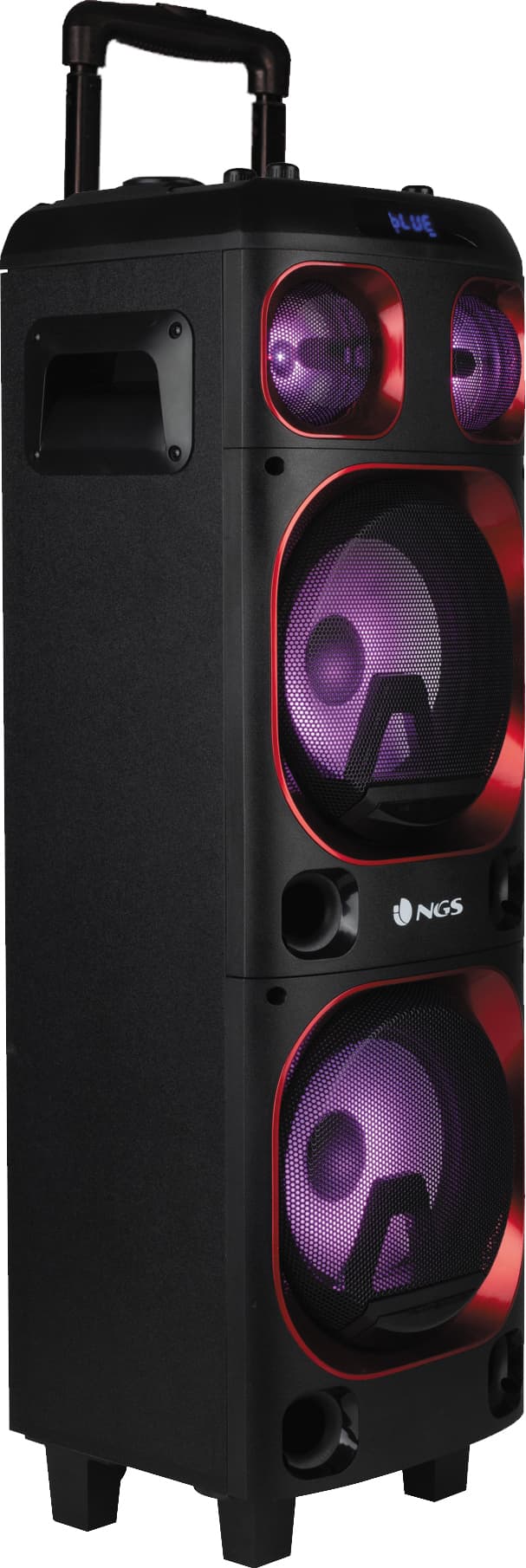 NGS Wild Ska 1 er et kraftfult DJ-musikkanlegg som gir deg en unik lydopplevelse full av kraftfull bass, uansett hvor du er. Denne Bluetooth-høyttaleren med Super Bass-funksjon og flerfargede lyseffekter leverer en enestående atmosfære for en natt full av moro. Gjør musikken enda sterkere ved å trådløst pare to enheter fra Ska-serien. Det kompakte alt-i-ett-designet med teleskoprør, håndtak og hjul gjør Wild Ska 1 enkel å bevege rundt.