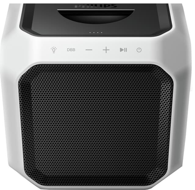 Philips TAX7207 partyhøyttaler sørger for at ingen glemmer festene dine. Ta den med deg eller inviter til en episk kveld i ditt eget hjem, og la deg og gjestene bli oppslukt av 180°-lyd av høy kvalitet. Det dynamiske lysshowet vil gjøre enhver lokasjon til en festscene. Koble til dine enheter trådløst eller par sammen opptil 50 høyttalere for en virkelig imponerende lydopplevelse. 12-timers spilletid gjør at festen kan holdes gående gjennom hele natten.