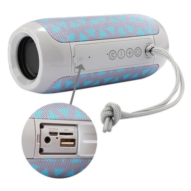 TG117 er en bærbar og trådløs høyttaler som passer til alle anledninger! Med sin minimalistiske design med et metallnett som beskytter høyttaleren, er den både praktisk og stilig nok til å kunne tas med på fest, til stranden, i hagen eller som en innendørs høyttaler! Høyttaleren er også designet for å tåle mer fuktighet enn mange andre høyttalere på markedet, og har en bærestropp som kan tres rundt håndleddet slik at du ikke mister høyttaleren når du bærer den!