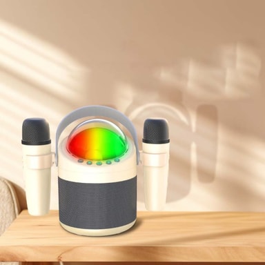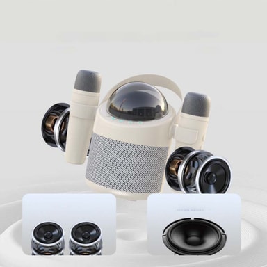 Parametere: Trådløse Bluetooth Doble Mikrofoner, Multifunksjonell Integrert Høyttaler, Hjemme Subwoofer, Stereo, Kortinnsetting, Talemelding, Støtter Bluetooth 5.4+U Disk/TF Kort Musikkavspilling, Støtter Doble Trådløse Mikrofoner, Super Tung Bass, RGB Lys