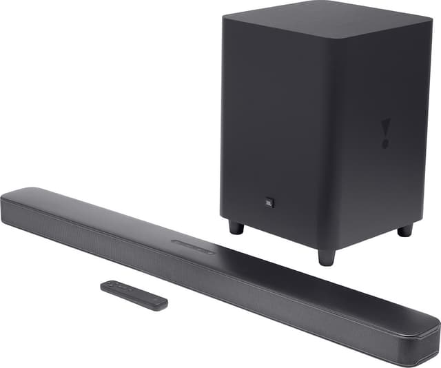 Lydplanken JBL Bar 5.1 Surround gir deg fantastisk lyd hjemme med en kraftig brummende 10" trådløs subwoofer, 4K-gjennomgang med HDR10 og Dolby Vision, innebygd Chromecast, Bluetooth og AirPlay2.Les mer om produktet